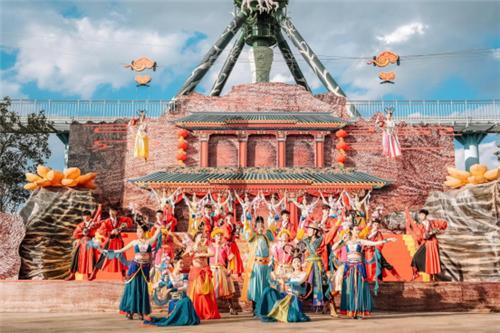 英歌槌擊打聲響起,鑼鼓聲、螺號聲并發,畫著梁山泊英雄形象臉譜、身著華麗服飾的非遺傳承者們,氣勢豪壯地走來,為游客呈現一場融匯戲劇、舞蹈、武術,極具歷史文化色彩的《潮汕英歌》。據了解,該表演團隊來自廣東省揭陽市,是潮汕民俗文化的突出代表。此外,還有《藏族龍鼓》、《西域羯鼓》、《南美鼓舞》帶來精彩紛呈的鼓舞表演,齊齊上陣為游客祈福。