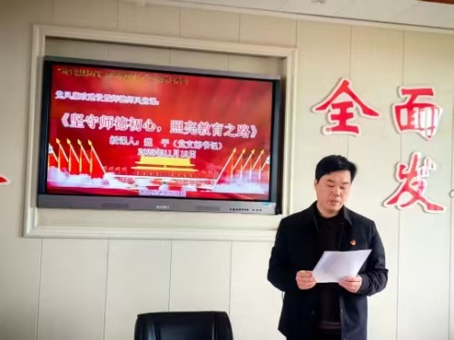 該校黨支部書記魏平同志為全體黨員上了一堂深刻生動的黨風廉政建設暨師德師風專題黨課——《堅守師德初心,照亮教育之路》。黨課緊密聯系學校工作實際,深入剖析了黨風廉政建設的重要性與緊迫性,強調教師要加強政治理論學習,提升政治站位與自身素養;同時嚴格遵守教育法規,規范辦學行為,堅決杜絕違規招生、有償家教、推銷教輔資料等不良現象,要時刻以高標準嚴格要求自己,堅守廉潔底線,弘揚高尚師德,做到以德立身、以德立學、以德施教,樹立良好的教師形象,以赤誠之心、奉獻之心、仁愛之心投身教育事業,用行動詮釋“學高為師,身正為范”的深刻內涵,照亮學生成長成才之路。