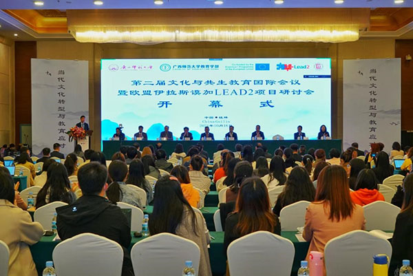 近日,第二屆文化與共生教育國際會議暨歐盟伊拉斯謨加LEAD2項目研討會在廣西桂林召開。廣西師范大學黨委書記鄧軍表示,本次大會的舉辦具有現實意義和時代意義,能夠推進教育學者的共生共進,匯聚成中國文化與共生創新研究的不竭動力和思維源泉。