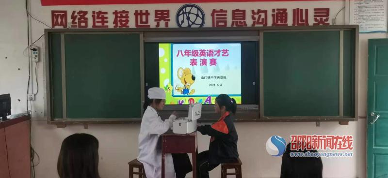 邵陽新聞在線訊(通訊員 李正軍 黃艷 嚴曉英)為了豐富校園文化生活,營造良好的英語學習氣氛,激發學生英語學習的興趣,6月4日下午,洞口縣山門鎮中學組織開展了英語綜合技能大賽。