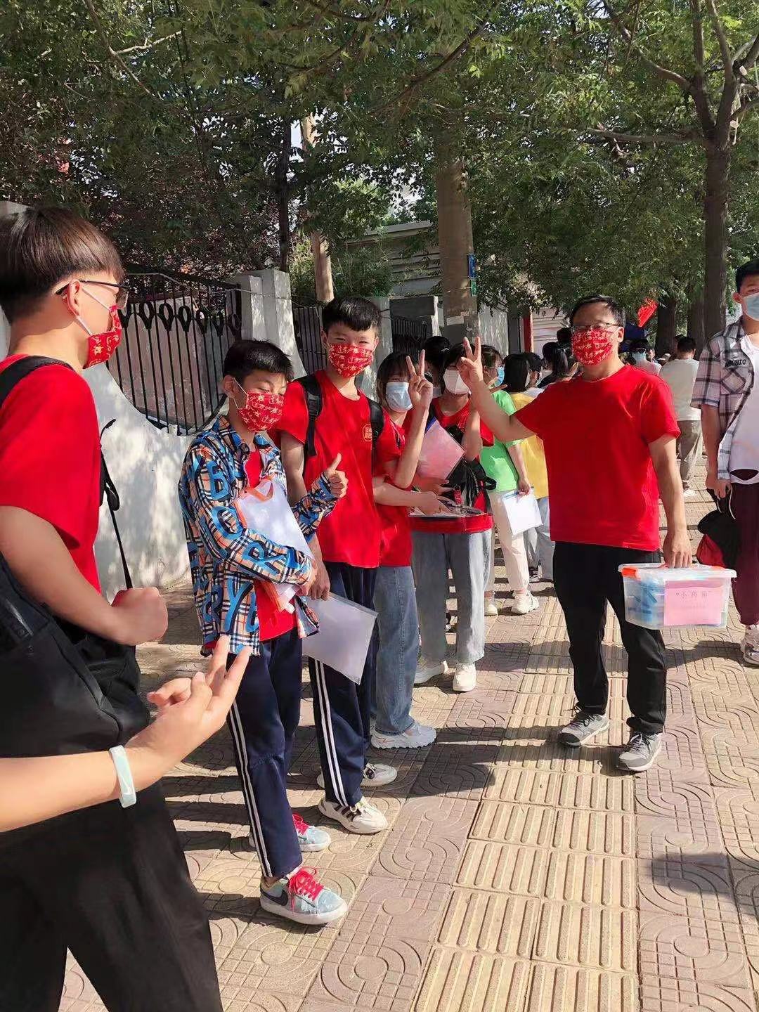 早晨七點二十,同學們齊聚校園,發出中考最強音,在老師們的歡送與鼓勵下,同學們登上通往夢想的路上。考慮到這兩天天氣炎熱,學校分別為各考點準備了一個小藥箱,放了藿香正氣水、創可貼等藥品。