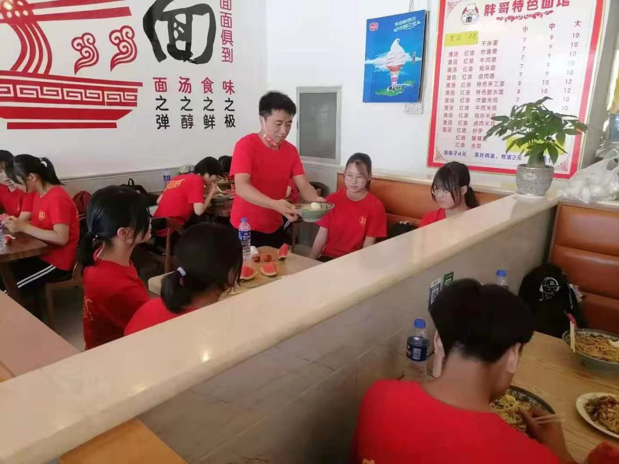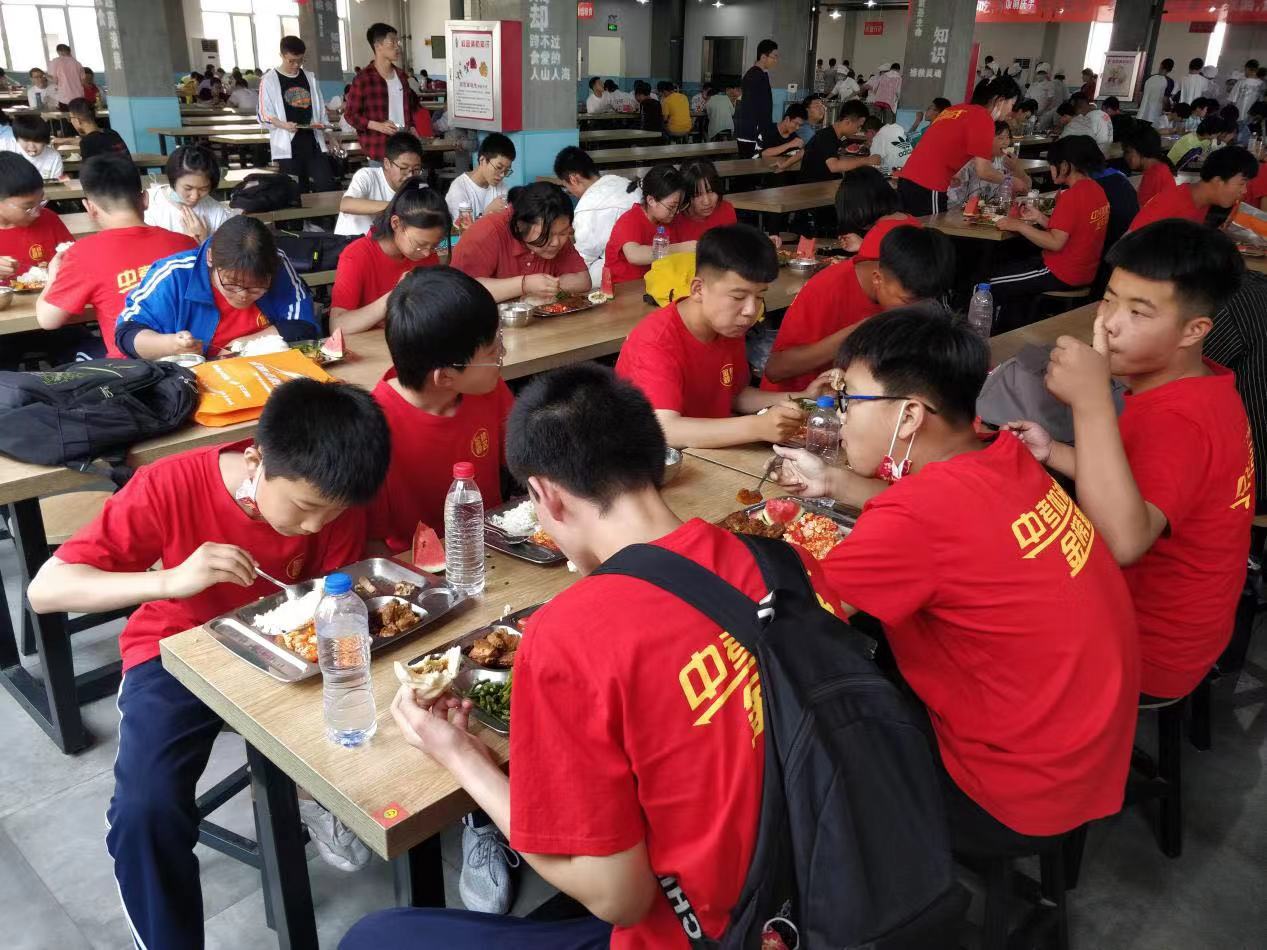 中午,剛考完語文的學生們享受了一頓溫馨的午餐。老師們在上周提前到考點周圍進行實地考察,聯系餐飲,讓考試期間同學們能夠專心應考,解決他們的后顧之憂。