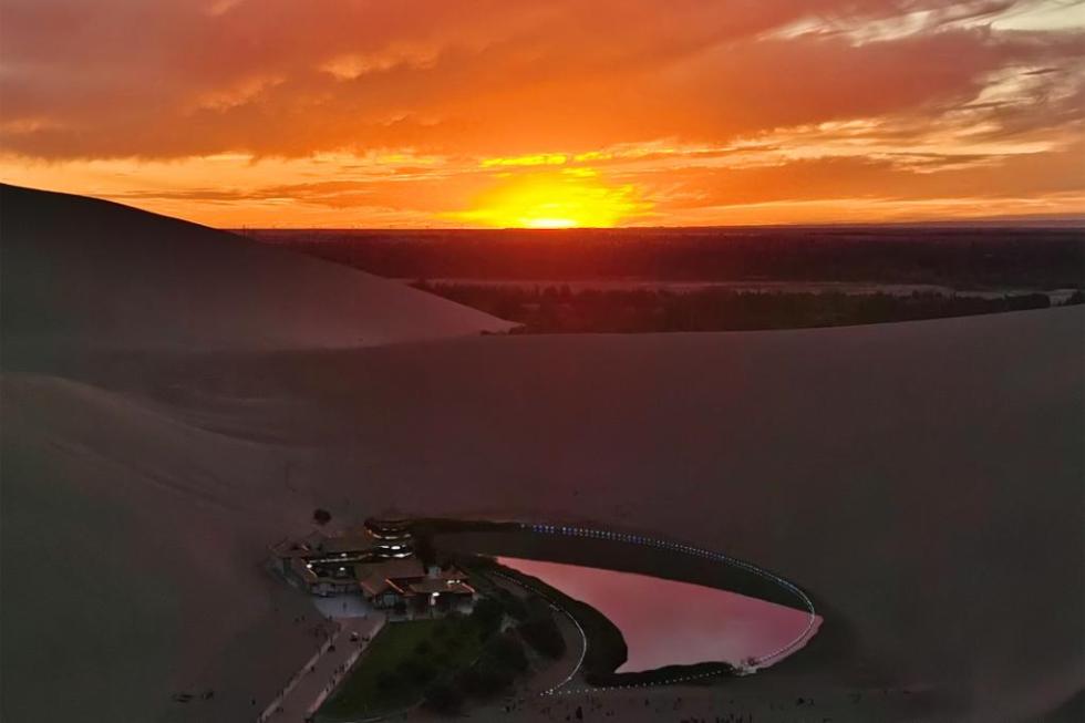 夕陽下的月牙泉。新華社記者劉詩平 攝