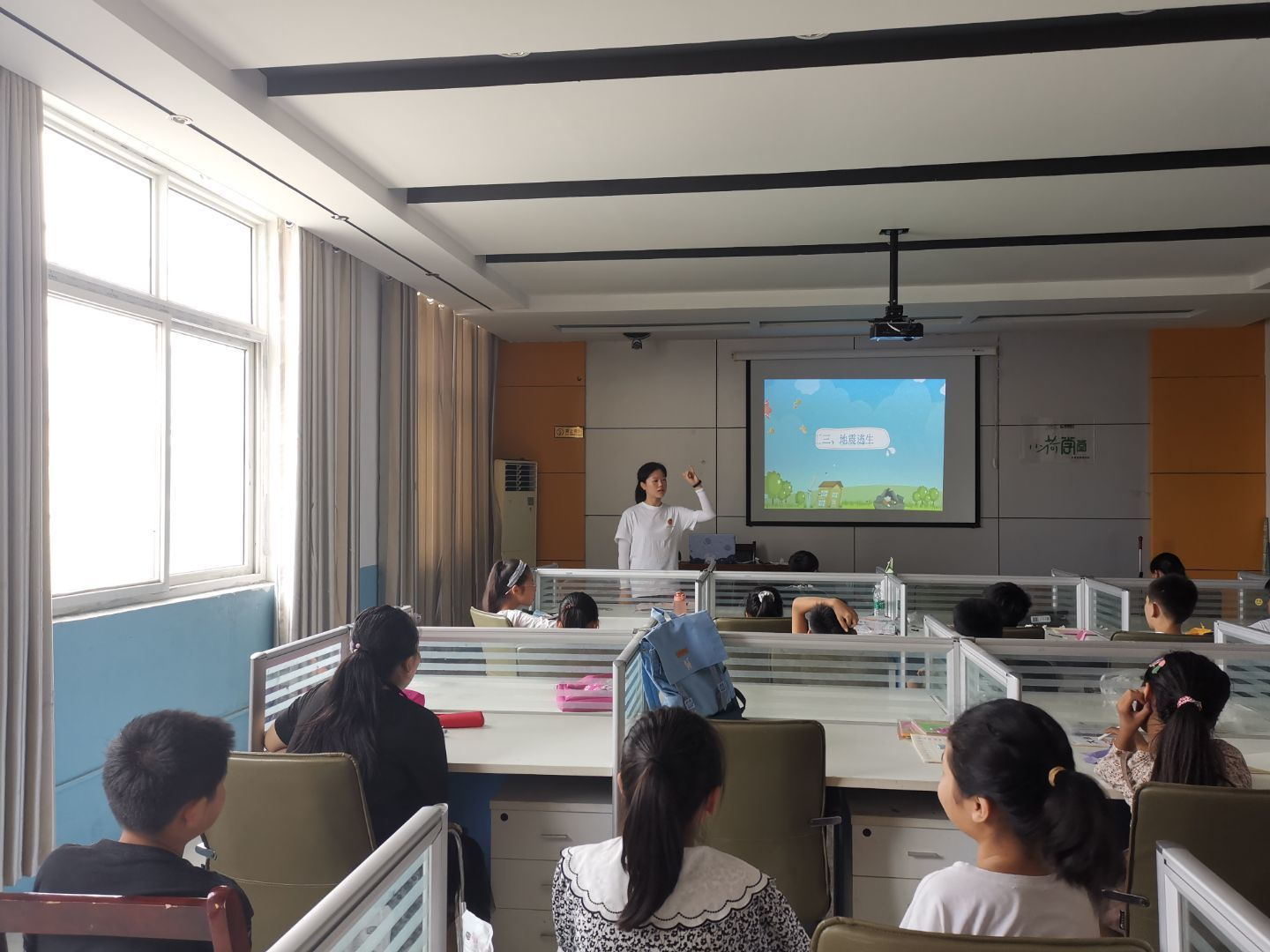 開課第三天,在安全自護課中,安鑫首先向學生們分享防震減災安全教育中地震自救的內容。待讓學生們充分了解到地震的含義及危害后,她要求學生們熟記地震逃生的四條原則,她表示在地震來臨之際要保持清醒的頭腦,就近躲避,躲在結實物體旁邊,并且伏而待定,盡量蜷縮身體,同時,她告訴學生們在發生地震時,伺機而動才是最佳決策。此外,她還強調在地震逃生過程中“地震活命三角區”的重要性。在教學現場,她向學生們指出教室里的“活命三角區”并進行現場避震練習示范,加深學生們對“活命三角區”的印象。最后,她帶領學生們一起朗讀“被壓埋后的自救準則”,要求學生們將準則謹記于心。此外,文明禮儀、科學實驗、傳統文化和愛國教育課程也順利開展。