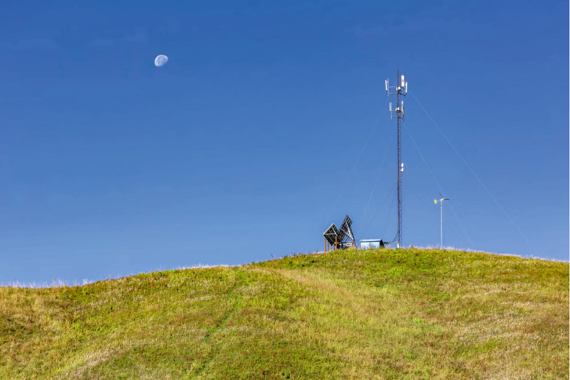 2019年9月19日,新疆維吾爾自治區伊犁哈薩克自治州新源縣那拉提鎮,草原移動信號塔。