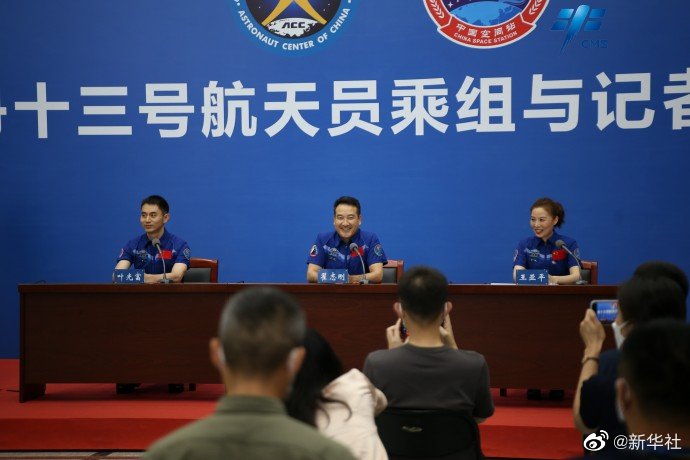 2022年6月28日下午,神舟十三號航天員乘組翟志剛、王亞平、葉光富返回 74 天后,在北京航天城與媒體記者見面。這是神舟十三號航天員乘組返回后首次與媒體和公眾正式見面。