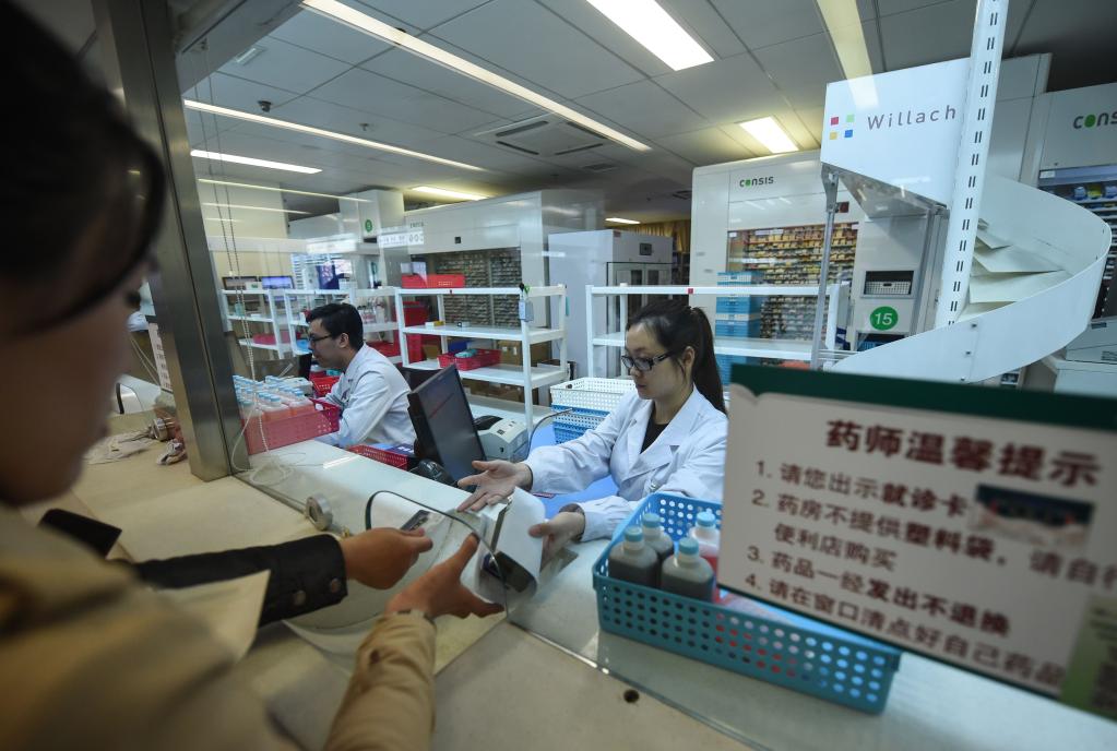 北京協和醫院的藥師給患者發放藥物。新華社記者羅曉光 攝