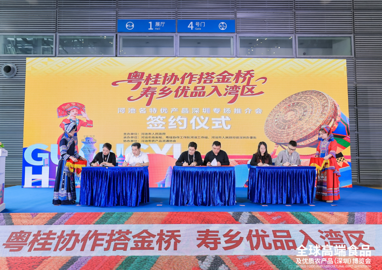 為深入貫徹國家關于區域協同發展與鄉村振興戰略的總體部署,10月22日-24日,由河池市人民政府主辦,河池市商務局、粵桂協作工作隊河池工作組、河池市人民政府駐深圳辦事處承辦,河池市農產品流通協會協辦的“粵桂協作搭金橋·壽鄉優品入灣區”河池名特優產品大灣區產銷對接活動在深圳會展中心(福田館)正式啟幕。