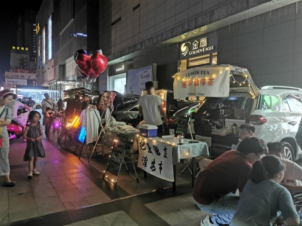 集市上不僅有新手賣家利用業余時間賣貨,也不乏實體店的商戶參加。武鑫在淮安區經營著一家飲品小吃店,對“后備廂集市”的模式很感興趣,于是經過一段時間的籌備,最終決定通過制作手打檸檬汁結合網絡直播的形式,宣傳自己的店鋪。“每次來到‘后備箱集市’就像是參加一次朋友聚會,帶來的飲料基本都能賣掉,既享受了生活,又達到為自己店鋪引流的效果。”武鑫開心地告訴記者。