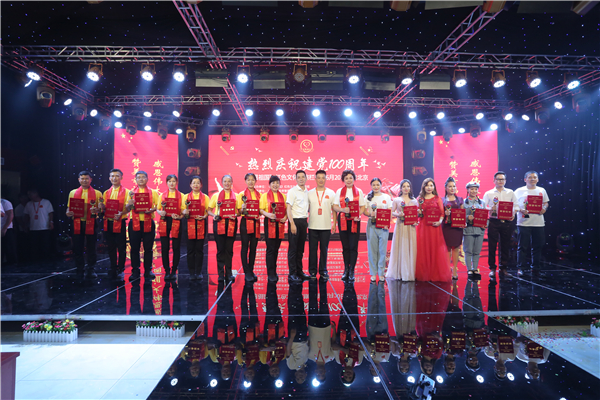 活動現場嘉賓云集:世界冠軍孔令輝父親孔祥智、母親谷淑霞,周總理特型演員趙申秋,陳毅特型演員陳鵬,青年演員白雨等及社會各界愛心人士百余人參加,陳長江發表了賀詞,晚會由央視主持人劉瑋、曹凱聯袂主持。節目精彩紛呈,賞心悅目,有小合唱《十送紅軍》、歌曲《瀏陽河》、情景劇《戰場上的婚禮》、曲《我愛我家鄉》、《我的中國心》、《相思樹之戀》、《故鄉的思念》、《我愛祖國的藍天》、《映山紅》、《我站在草原望北京》、《慶黨百年贊》、舞蹈《我的中國夢》、串燒情景劇《我愛你中國》、《我愛我的家鄉》;青年歌手魏可可《黨旗更鮮艷》;張振豪《我是中國人》等歌曲;手語表演《感恩的心》;晚會在《沒有共產黨就沒有新中國》的歌聲中圓滿落幕。《感恩祖國》紅色文化之旅欄目組為愛心企業頒發了紅色文化愛心企業獎杯、為個人頒發了紅色愛心獎杯。