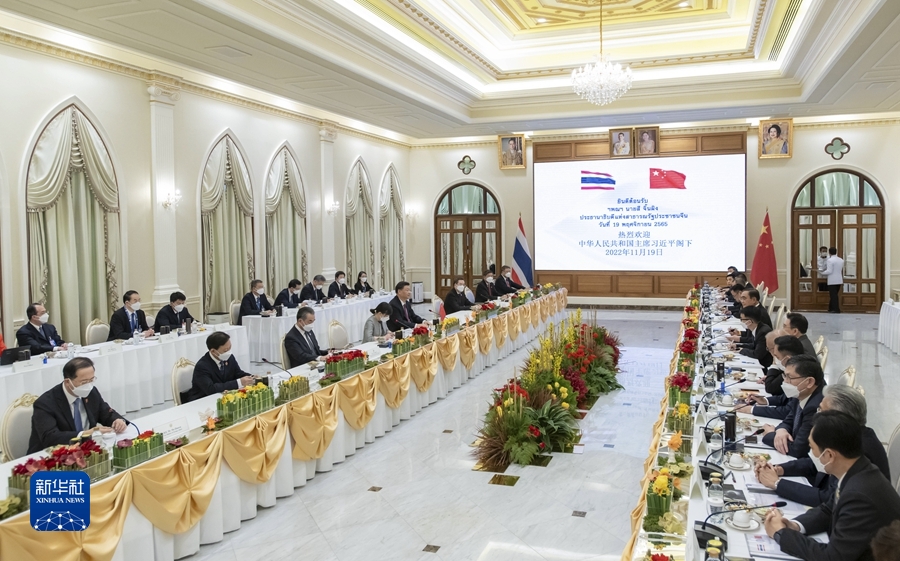 習近平指出,雙方要像走親戚一樣常來往、多走動,在涉及彼此核心利益和重大關切問題上繼續相互堅定支持。雙方要落實好未來5年《中泰戰略性合作共同行動計劃》,統籌推動各領域合作取得更多成果。要有效對接各自發展戰略,推動高質量共建“一帶一路”不斷取得新成效。雙方要加強投資、貿易、旅游、基礎設施、產業園等傳統領域合作,同時不斷培育新增長點,推動數字經濟、新能源汽車、科技創新等新領域合作取得積極進展。要加快中老泰三方鐵路合作,積極推進“中老泰聯通發展構想”,重點加強基礎設施“硬聯通”,做好物流通關“軟聯通”,擴大泰國優質農副產品輸華。中方愿同包括泰國在內的各方一道,高質量實施《區域全面經濟伙伴關系協定》,讓這一全球最大自貿區安排釋放更大紅利。加大打擊跨境犯罪,深化追逃追贓合作。加強教育、醫療、扶貧等民生領域合作,通過多種方式交流減貧發展經驗,推動兩國扶貧合作走深走實,辦成、辦好一批貼近群眾、服務基層的實事。要加強青年交流,使兩國人民心更近、情更深,豐富中泰命運共同體的人文內涵。