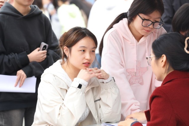 在閩江學院主辦的2025屆畢業生就業招聘會上,職業形象輔導等暖心舉措讓大學生享受便捷高效的就業指導服務。謝貴明攝/光明圖片